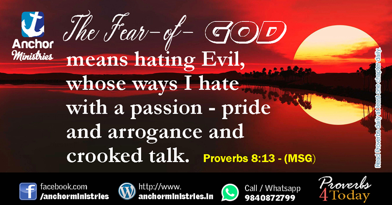 In today’s thinking, we see two kinds of things. One is fear of the Lord. The second is the things that the Lord hates. In other words, there are two types of people. One who hates evil things. Another one is pride, arrogance, the twisted, and the evil talk. The Lord hates such people. We are the children of the Lord, who are humble and be hated evil. Today, let’s help the Lord to be like that.