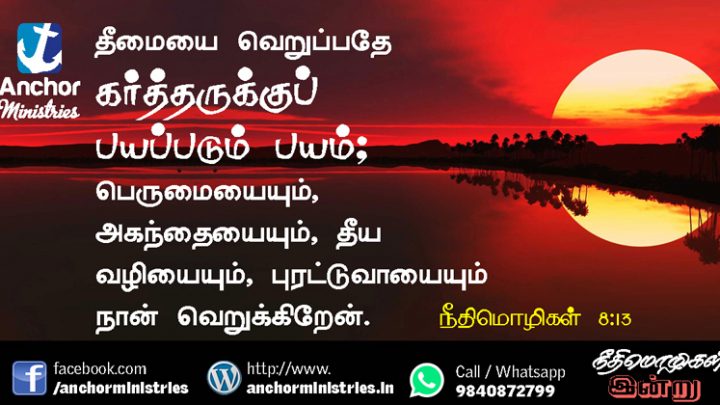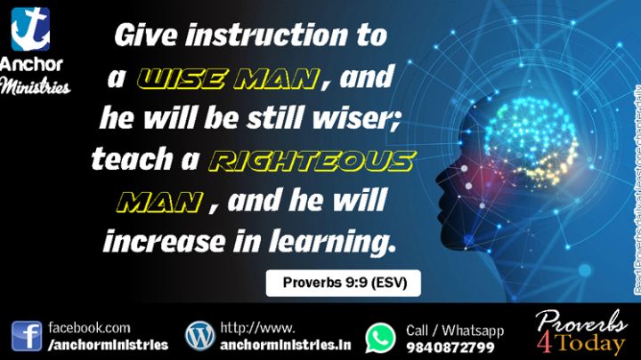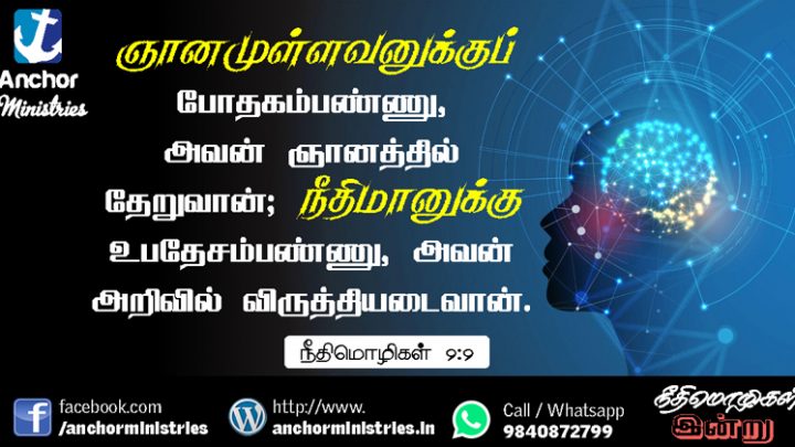 ஞானமுள்ளவனுக்குப் போதகம்பண்ணு, அவன் ஞானத்தில் தேறுவான்; நீதிமானுக்கு உபதேசம்பண்ணு, அவன் அறிவில் விருத்தியடைவான். – நீதிமொழிகள் 9:9 சிந்தனைக்கு ஸ்டீபன் ஆர் கவே (Stephen R Covey) என்ற தலைமைத்துவ எழுத்தாளர், தனது ”அதிக ஆற்றல்வாய்ந்த மனிதர்களின் 7 பழக்கங்கள் (7 Habits of Effective People)” என்ற புத்தகத்தில் ஏழாவது பழக்கமாக முன்பு கூறிய 6 பழக்கங்களை பட்டைத் தீட்டுங்கள் என்று கூறியிருப்பார். ஆம், பட்டை தீட்டுவது ஞானமுள்ளவனுக்கு உண்டான குணம். ஞானமுள்ளவன் போதகத்தைக் கேட்டு…